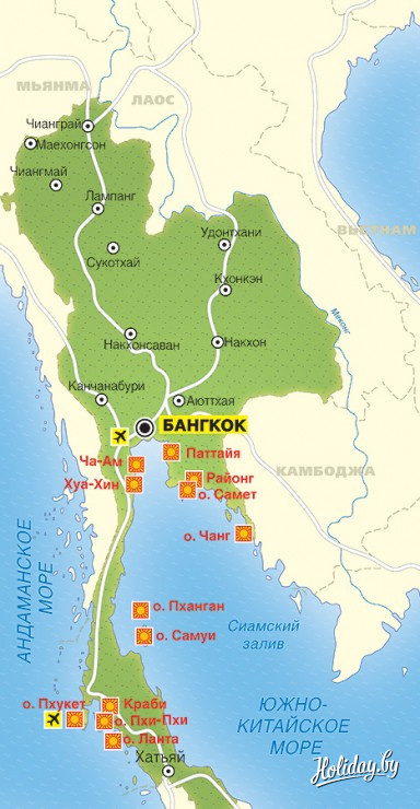 Карта курортов Таиланда
