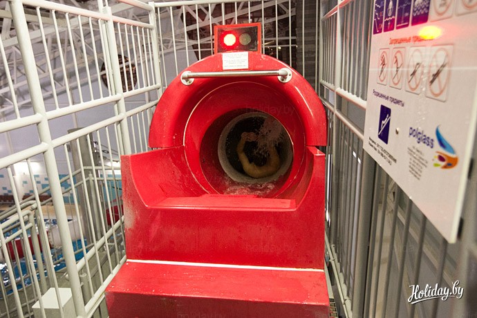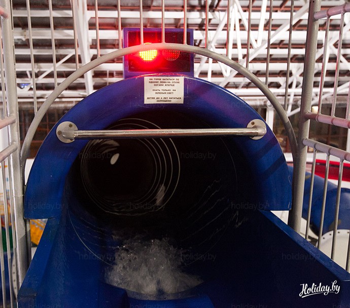 Желтая – открытая, самая маленькая, всего 3,5 метра, и не имеет возрастных ограничений. Наибольшей популярностью пользуется синяя горка – она не самая высокая, зато самая захватывающая! Проверено на себе! Из трижды завитой трубы так и слышен звонкий девчачий визг! Благодаря скорости, которая развивается внутри закрытой трубы, скользишь не только по ее дну, но и по стенке под углом в 90 градусов! В нашем личном рейтинге синяя труба коллегиально была признана «№1»!