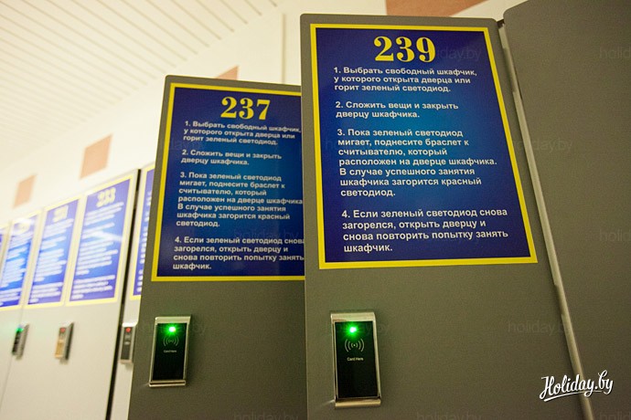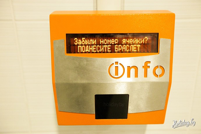 Если вы, вдоволь наплескавшись, вдруг обнаружите, что напрочь забыли номер вашего шкафчика – их же много, и они все одинаковые, - на стене есть считывающее устройство, которое при поднесении браслета, «вспомнит» нужную комбинацию цифр.