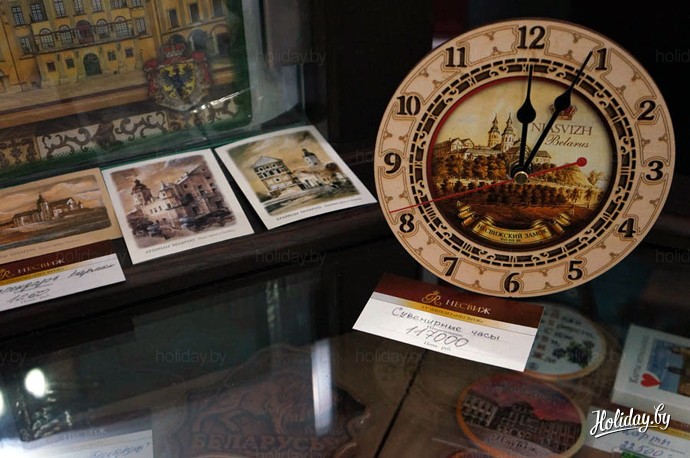 Сувенирная лавка нас порадовала. Здесь предложен очень большой спектр сувенирной продукции на любой вкус и кошелек. Кроме стандартных магнитиков, статуэток, кружек и т.п. можно приобрести мыло ручной работы с символикой Несвижа, шоколад «Чорная Панна Нясвижа», фартук с изображением замка и еще кучу полезных и не очень мелочей. В основном все сувениры фабричного изготовления. Если вам милее вещи сделанные руками мастеров из глины и других материалов, лучше покупать их возле входных ворот на территорию дворцово-паркового комплекса.