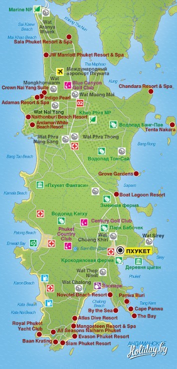 Туристическая карта Пхукета с указанием отелей и достопримечательностей