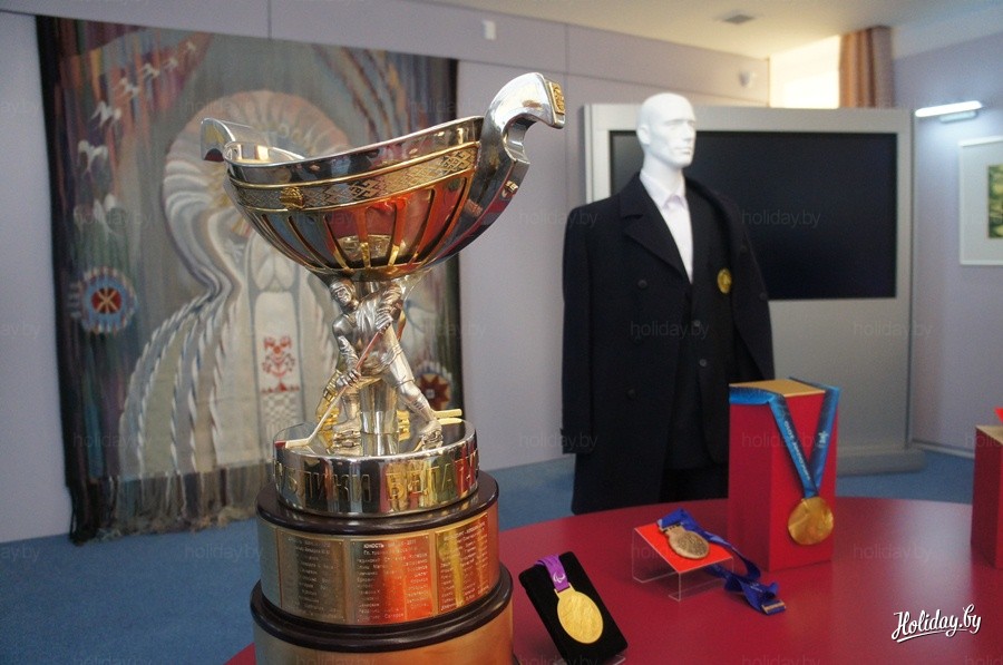 Центральным экспонатом презентации стал переходящий Кубок Президента Республики Беларусь, который вручается команде-победителю открытого чемпионата Беларуси по хоккею. Победители недолго могут «осязать» свою награду, ведь спустя некоторое время после торжественного вручения кубок отправляется на завод-производитель – там на него прикрепляется очередная табличка с названием команды-победителя. Затем приз возвращается в музей – ожидать следующего чемпионата. Всего на нем может поместиться 33 таблички.