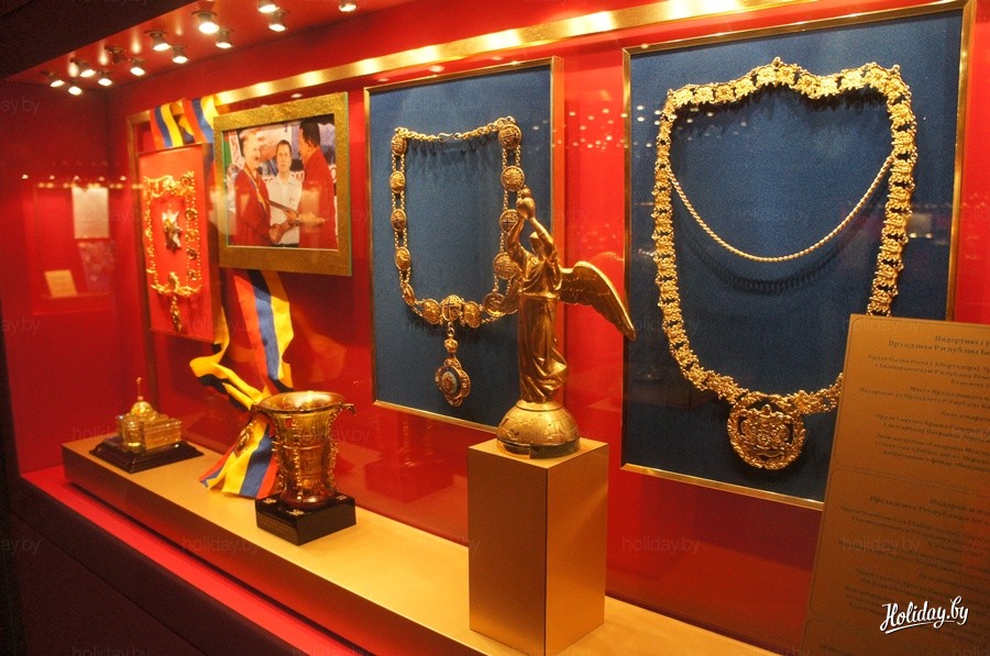 Коллекция экспонатов музея сегодня насчитывает почти 4 тысячи единиц, связанных со всеми этапами становления белорусской государственности, различными сферами жизни страны – культурой, спортом, образованием, медициной, экономикой и производством. Словом, здесь собраны свидетельства важнейших достижений страны за годы независимости. К сожалению, пока большая часть сокровищ музея скрыта от посторонних глаз – их просто негде разместить. Хотя и те 800 единиц, представленных в витринах музея, тоже не так просто увидеть простому смертному. Ведь чтобы попасть в сам музей, расположенный на 7 этаже Администрации Президента Республики Беларусь, нужно пройти довольную долгую процедуру проверки документов. Паспортные данные нужно подать за несколько дней до предполагаемого визита. Когда соответствующие органы тщательно изучат ваши биографические и биометрические сведения, вы можете явиться в здание № 38 по ул. Карла Маркса. Не забудьте взять с собой деньги – вход в обиталище белорусской государственности платный.