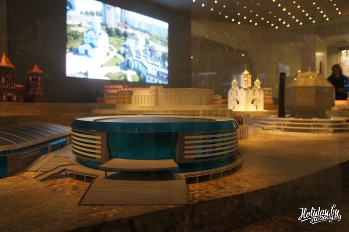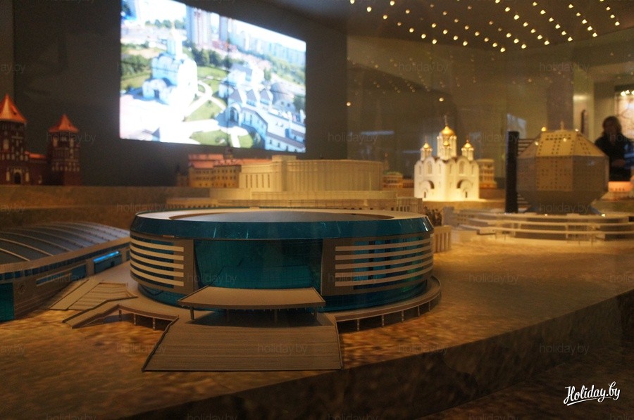 Встречает посетителей огромный макет белорусских достопримечательностей.