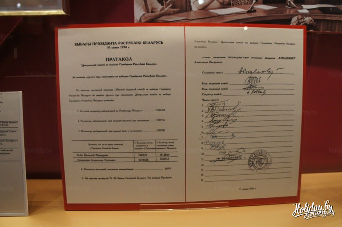 Здесь же расположен самый популярный экспонат музея - паспорт Президента Республики Беларусь.