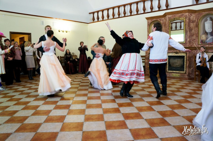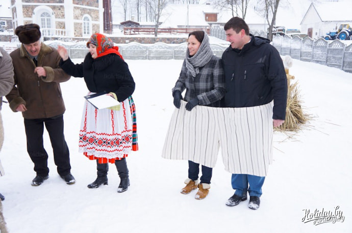 На въезде в фольварок нас встречали ряженые с песнями и плясками