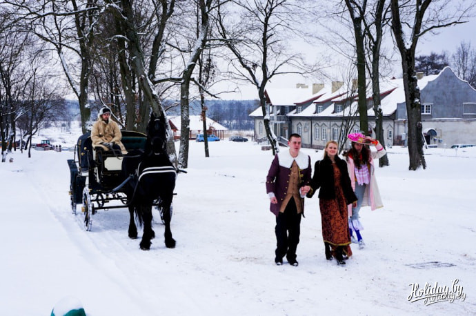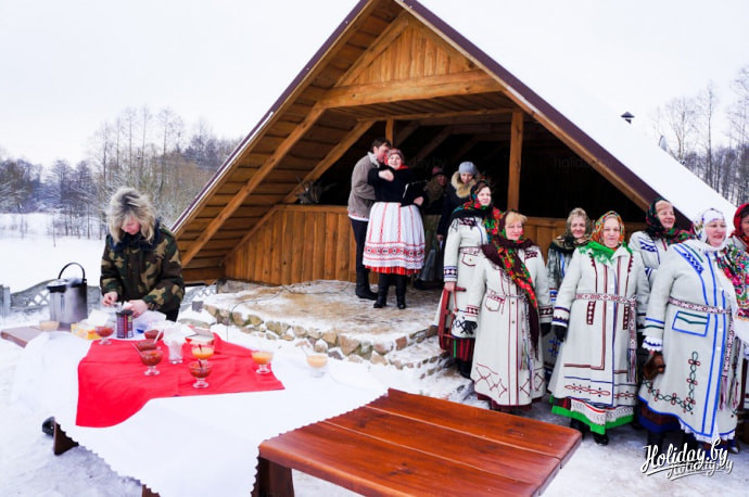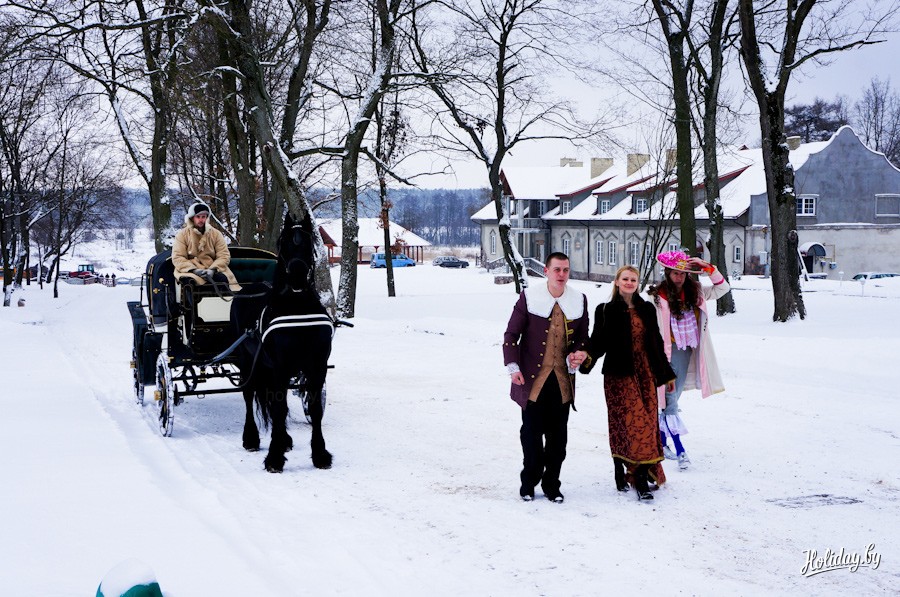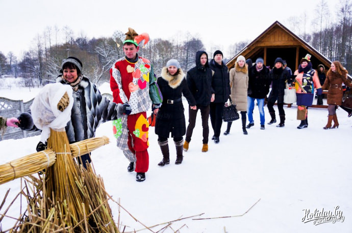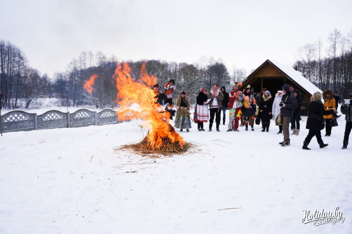 Был организован обряд «Проводы зимы» с конкурсами, шутками, играми, песнями, танцами и, конечно же, блинами. В морозный день блины с вареньем и чаем – то, что надо. Водим хоровод, сжигаем чучело и идем греться в главный дом под названием «Шляхетский».