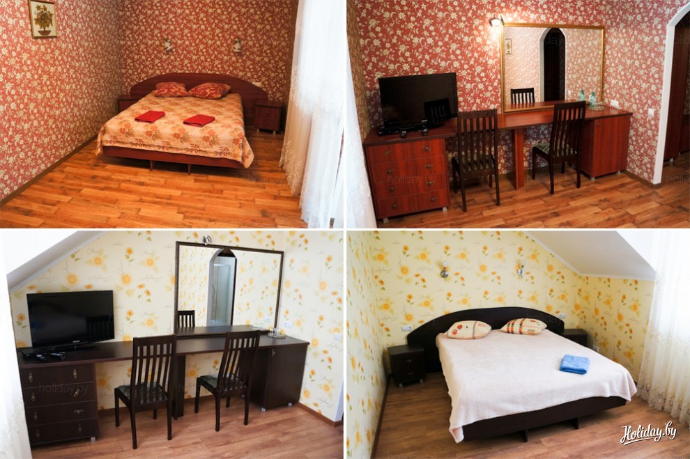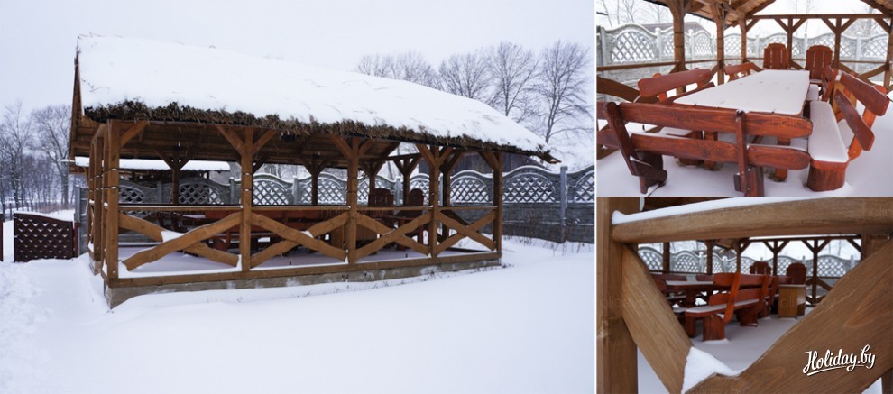 По своей сути это не просто агроусадьба, а целый комплекс. Здесь расположено 4 домика для аренды, мини-отель на 9 номеров, 5 беседок различной вместимости. Беседки можно арендовать как отдельно, так и пользоваться ими при проживании в усадьбе. Для проведения торжества или делового мероприятия арендуется большой банкетный зал.