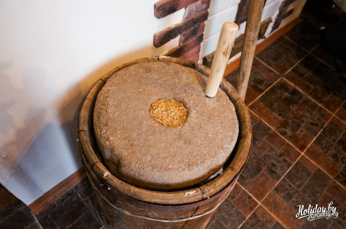Мы попробовали перемолоть зерно на жерновах. Говорят, что вместе с зерном, мы перемалываем все свои проблемы и болезни. Так что теперь мы будем совершенно здоровы и беззаботны. По крайней мере, постараемся сохранить это состояние хотя бы до конца года или до следующей поездки. Также можно попробовать себя на ткацком станке, проверить силу на старинном утюге (некоторые еще помнят, как бабушки пользовались такими) и спрясть нить на настоящей прялке.