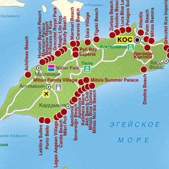 Остров Кос – греческий остров-курорт, расположенный в Эгейском море. Он является третьим по величине среди островов Додеканеса. В путеводителях и прочих материалах Кос зачастую называют «Садом Эгейского моря» - благодаря пышной островной растительности, множеству зеленых насаждений и парков. Именно благодаря прекрасной экологической обстановке, красоте природы и множеству достопримечательностей Кос так популярен среди туристов в Греции.