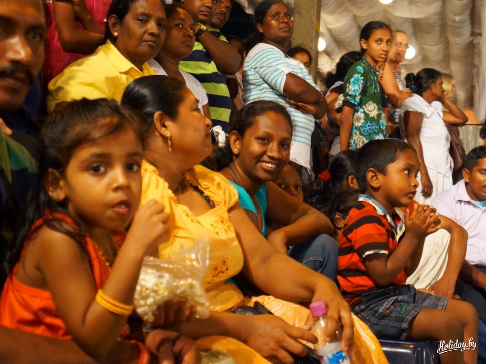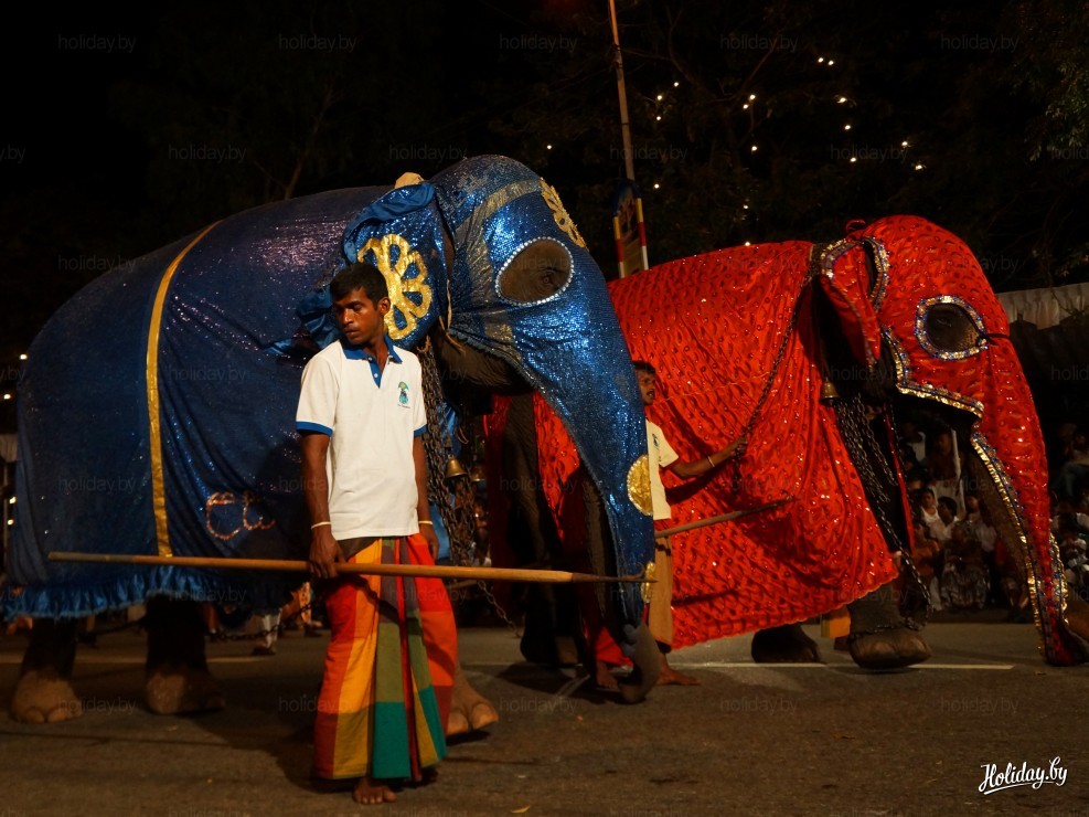 Судя по тому, как слоники друг с другом заигрывали, настроение у них было хорошее. Всего их на параде было 74 штуки. Всех мы не увидели, поскольку надо же уступить свои удобные места в первых рядах на асфальте и другим желающим поближе увидеть парад, но 1,5 часа мы с восторгом наблюдали за происходящим. Вывод, в Шри-Ланке умеют делать праздники и они, как мы это ощутили, проводятся для жителей страны, а не для галочки.
