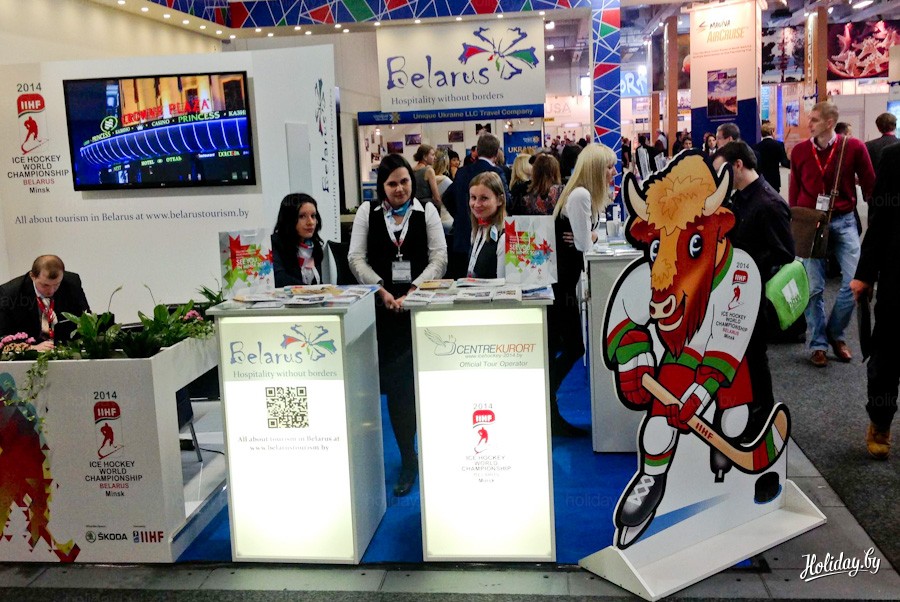 Нашу страну на выставке представляли Национальное агентство по туризму, ГУ "Центркурорт", информационно-туристский центр "Минск", Дирекция по проведению чемпионата мира по хоккею с шайбой 2014 года.