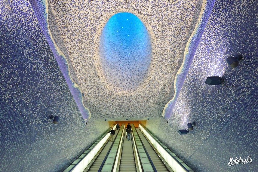 Как бы там ни было, пятерка самых впечатляющих станций выглядит так: на первом месте в британском рейтинге оказалась станция метро Толедо в Неаполе (Италия), открывшаяся совсем недавно на Via Toledo – самой главной неаполитанской торговой улице. Над интерьером одной из самых глубоких в мире станций метрополитена трудился замечательный тандем – испанский архитектор Оскар Тускетц Бланка и южноафриканский художник Уильям Кентридж. Стены и потолок станции покрыты рисунками света и воды. У ее посетителей создается впечатление, что помещение засыпается падающим снегом или залито водой. Этот эффект достигается благодаря подсвеченной мозаике разных оттенков.