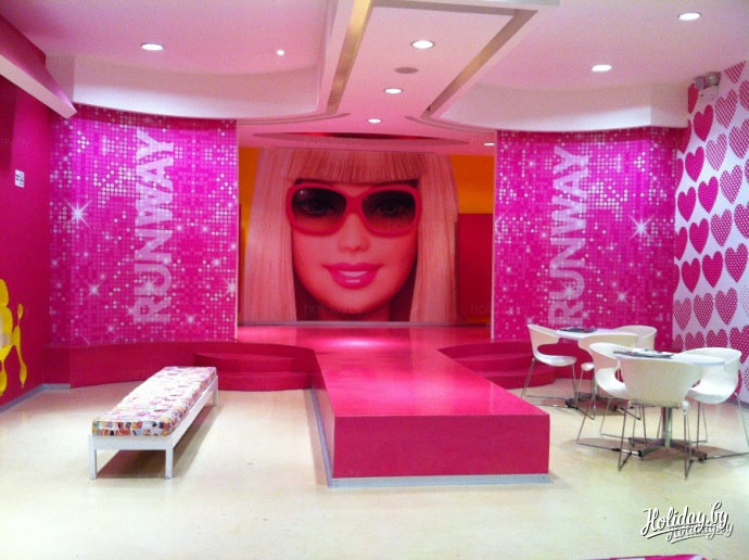 Barbie-Haus полностью повторяет кукольный домик Барби, только величиною с огромный особняк! Здесь, на площади в 2500 квадратных метров каждая девочка сможет не только припудритmся, сидя на пуфике у зеркала Барби, поваляться на розовой кровати с балдахином, но и поучаствовать в показе мод, спеть караоке или испечь кексы на большой розовой кухне. Пока дочь будет заниматься кондитерским делом, любая мама сможет посетить салон красоты Барби, который расположен здесь же, в доме. В салоне мамы получат консультации стилистов, пройдут мастер-класс на тему «Как изменить свой гардероб».