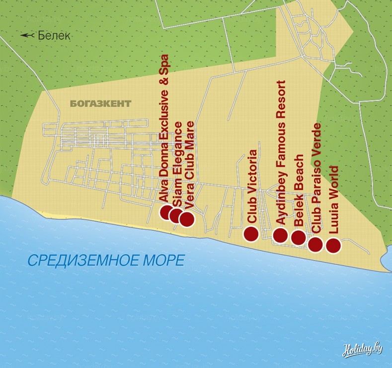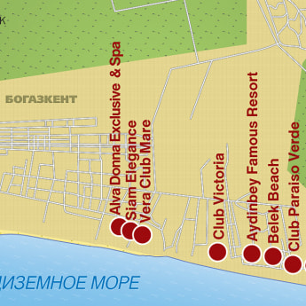 Прилетев в международный аэропорт Анталии, добраться в Богазкент будет более чем легко – вам нужно будет лишь найти свой трансфер и провести в дороге до отеля менее часа. Также суда можно попасть и из центра самой Анталии – например, на такси.
