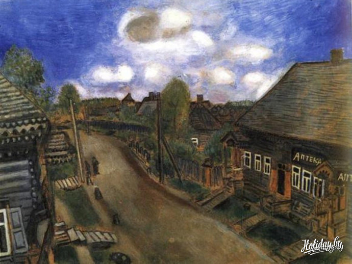 На фота: малюнак Марка Шагала "Аптека в Витебске" (1914 год)