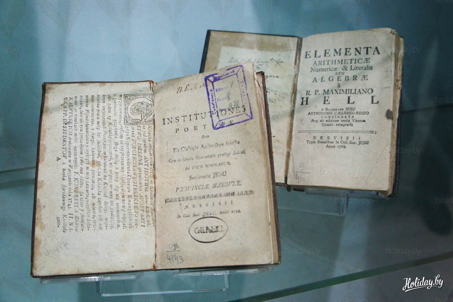 Так, например, в отделе "Произведения Радзивиллов и про Радзивиллов" можно найти книгу Николая Радзивилла Сиротки "Путешествие ко святым местам и в Египет", изданную в 1787 году в Санкт-Петербурге, а в отделе "Старопечатные издания Несвижской типографии" - "Elementa arithmetikae numericae & literalis seu algebrae" Максимилиана Хэлла, выпущенную в 1768 году в типографии Несвижа.