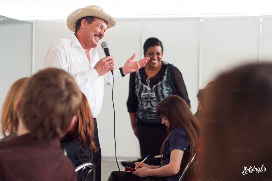 Так и случилось: вместо отчетного мероприятия благодаря харизме и обаянию Посла и его помощниц встреча с представителями турфирм, студентами и просто влюбленными в Кубу превратилась в настоящий интерактив! Господин Посол лично подходил к сидящим в зале и спрашивал, какая информация о Кубе будет им интересна и полезна. И если на первых порах угрюмые белорусы опешили от такого формата встречи, от кубинского темперамента и такого простого «похода в народ», то через 15 минут сдержать улыбку не мог никто. Даже те, кто до этой встречи с прохладцей относились к маракасам, океаническому побережью и ароматам свободы, отчетливо ощутили, как что-то «ёкнуло» внутри при виде открытой кубинской улыбки.