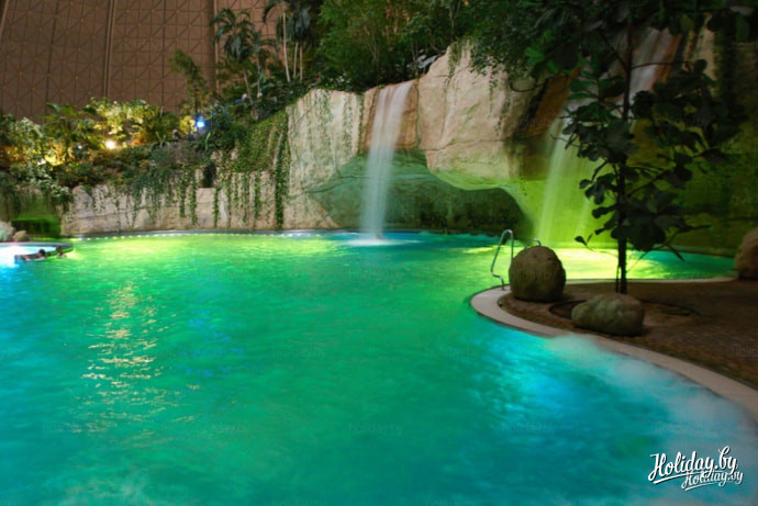 Внутри аквапарка постоянно поддерживается комфортная температура и воссоздан климат тропического леса, поэтому, прогуливаясь по аллее вреди тропических растений чувствуешь себя действительно где-то в джунглях. Все растения тут настоящие, по территории летают, бегают и прыгают тропические животные и птицы. Экзотические попугаи чувствуют себя как на воле. Тут найдут для себя развлечение и взрослые и дети и любители тихого спокойного отдыха и те, кто без экстрима не может и дня провести.