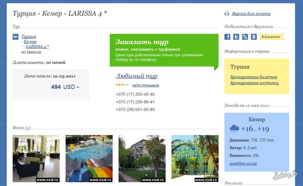 Понравившиеся вам варианты туров легко сохранить в блокнот для отправки друзьям и знакомым по почте, а также поделиться этой информацией в социальных сетях.