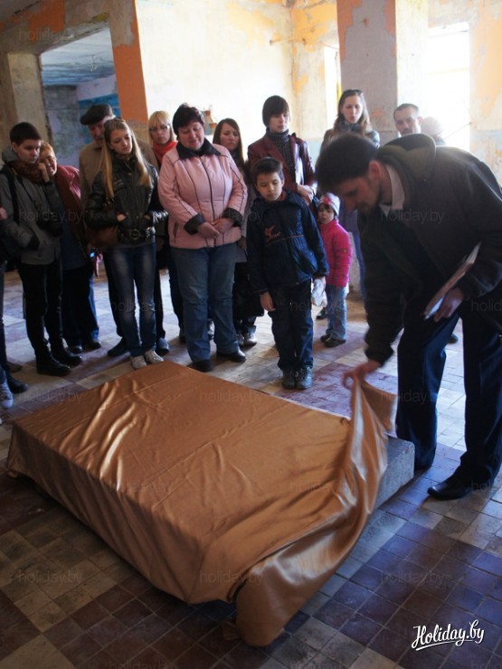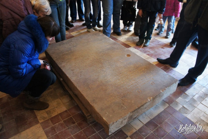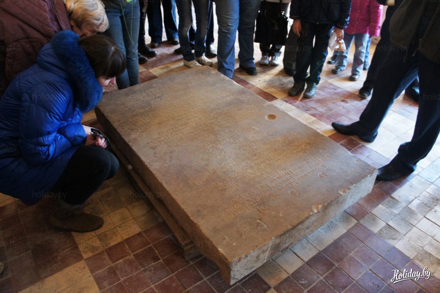 В конце экскурсии экскурсовод приготовил для всех сюрприз – плиту 1804 года с рассуждениями Адама Хмары и его брата о семье.
