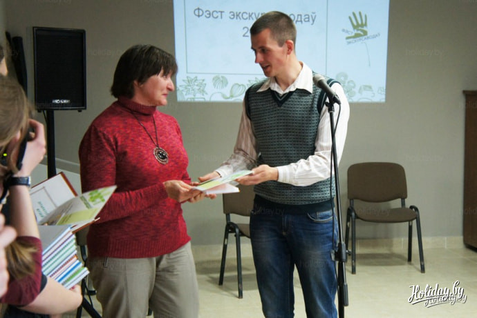 Есть у нас один очень хороший и уникальный (!) проект – «Экскурсоводы и краеведы Беларуси». И есть мечта – собрать на страницах этого проекта/каталога всех тех, кто может познакомить с Беларусью иностранцев и самих белорусов (ведь ни для кого не секрет, что большинство белорусов очень мало знают об истории и достопримечательностях страны, в которой живут). «Своих» экскурсоводов мы очень любим и ценим, привлекаем к жизни нашего блога и периодически балуем их небольшими подарочками. Так, 100му экскурсоводу в нашем каталоге мы подарили классные настенные часы (между прочим, из самого Вильнюса везли!). Не смогли мы пройти и мимо Фэста экскурсоводов.