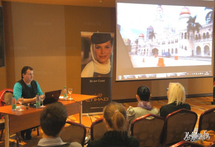 Активная рекламная кампания стартует с 1 мая, первый же вылет состоится в середине сентября из Минска в Малайзию. Всего на протяжении маршрута туриста ожидают 5 перелетов. Путешественники увидят храмы и мечети Куала-Лумпур, спустятся в пещеры Бату, увидят Путраджаю, проведут два дня в Сингапуре с посещением водно-светового шоу, парка развлечений Universal Studios Singapore. «Кто был в Universal Studios Singapore, тот в Диснейлэнд никогда не пойдет», - резюмировал Валерий Варес, немало заинтриговав присутствующих.