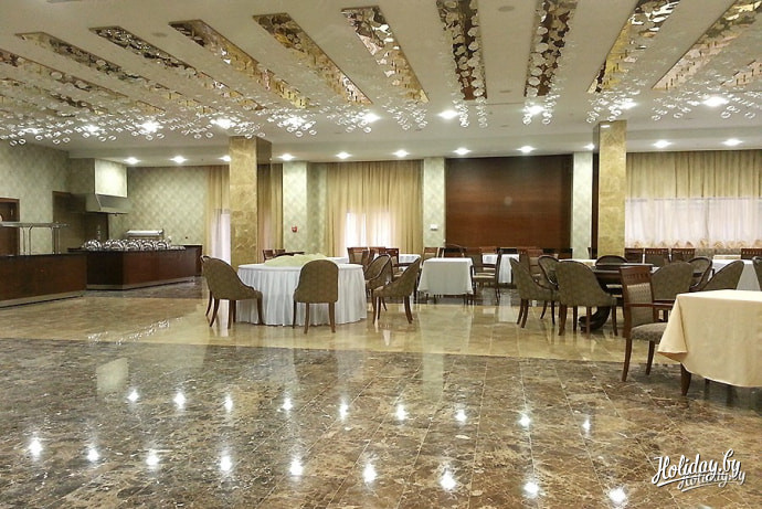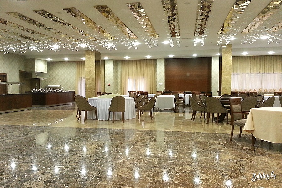Поесть можно на выбор в трех ресторанах на 460 посадочных мест – «Столица», «Националь» и «Олимп», обед без алкоголя в которых будет стоить от 35$, выпить в пяти барах и четырех банкетных залах.