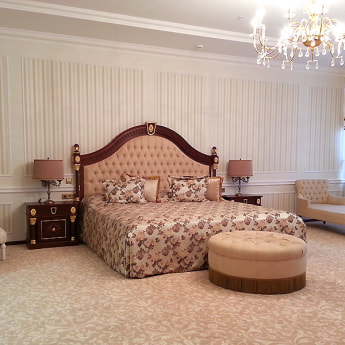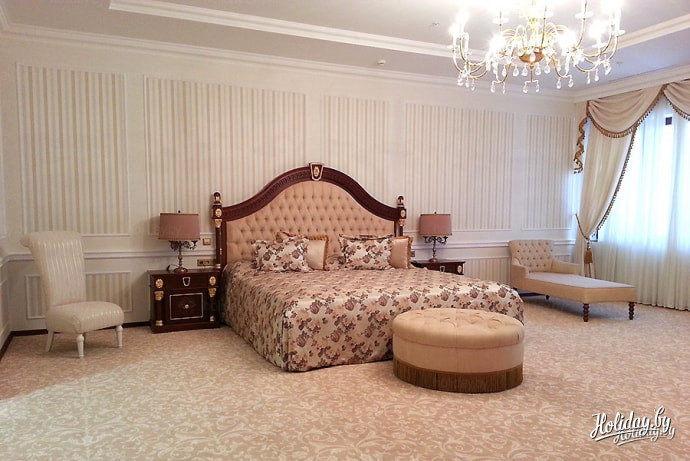 Номера оформлены в золотисто-шоколадной гамме – гамме всего отеля, который строила турецкая компания «Эсмаш». Заказчиком выступило республиканское унитарное предприятие «Отель „Минск“».
