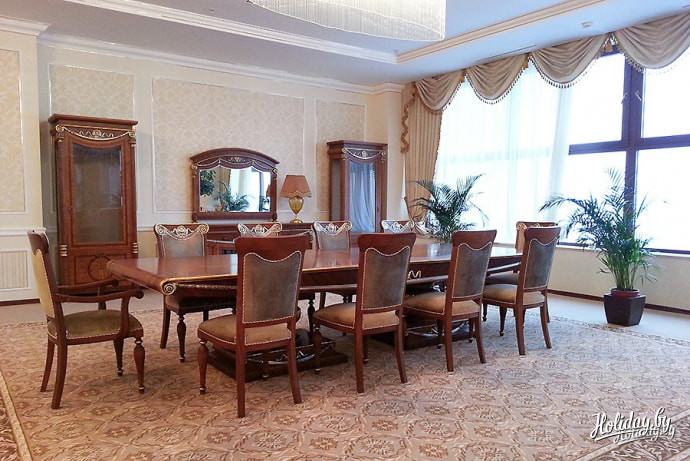Дождались: сегодня 5-звездочный «Президент-Отель», как написал в книге отзывов Александр Григорьевич, «сочетающий европейский комфорт с традициями белорусского радушия и уюта», содержит 154 номера с мини-барами, системами климат-контроля, теплыми полами, бесплатным wi-fi, в номерах подороже – инфракрасная сауна. В ванной можно найти «набор туриста» - бархатную косметичку с мочалкой, расческой, солью для ванн, пастой и бритвенными принадлежностями.
