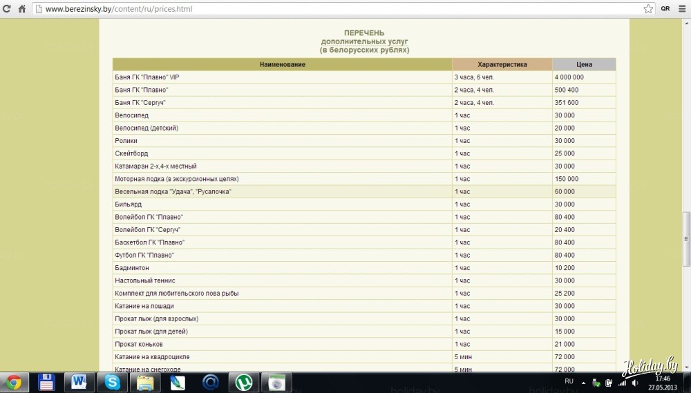 Прикинув в уме, сравнив, призвав логику в союзники, мы, естественно, усомнились в здравости такого ценника и, несмотря на официальные подписи под прейскурантом, решили перепроверить представленную информацию. И – о чудо! – на официальном сайте Березинского биосферного заповедника нашли-таки правду! Настоящая и более адекватная цена услуг бани – Br4 миллиона. А в прайс-лист, по-видимому, закралась досадная опечатка, ускользнувшая от внимания экономической службы гостиничного комплекса.