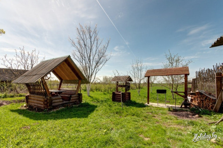Уютная усадьба в аренду в стиле «прованс» всего в 30 км от Минска отлично подойдет как для отдыха с семьей, так и для веселых выходных с друзьями. Здесь есть камин, баня на дровах, большая беседка с мангалом, гамак, игровая площадка для малышей, в местных водоемах отличный клев. Хозяйка усадьбы приготовит своим гостям отменный обед или ужин из блюд грузинской, белорусской или европейской кухни.