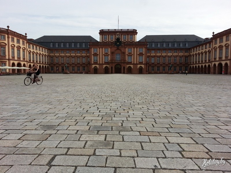 Дворец в Манхайме один из самых крупных в Европе зданий такого типа строился в 1720-1760 гг (длина фасада 450 метров и площадь в 6 гектаров). Это было замахом на французский Версаль. Во время Второй мировой войны полностью разрушен и был восстановлен в 1956-1961 году.