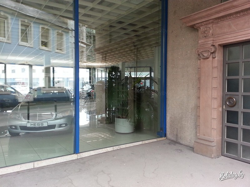 Один из многочисленных автосалонов прославленной немецкой марки. Даже дверные ручки выполнены в узнаваемом стиле.
