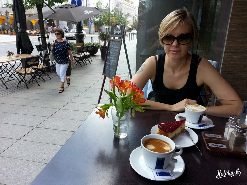 Завтракаем в любимой кофейне в центре литовской столицы. Летом в ней распахиваются не только двери, но и окна - сидишь себе в витрине витриной являясь и вкушаешь десерты с кофе.