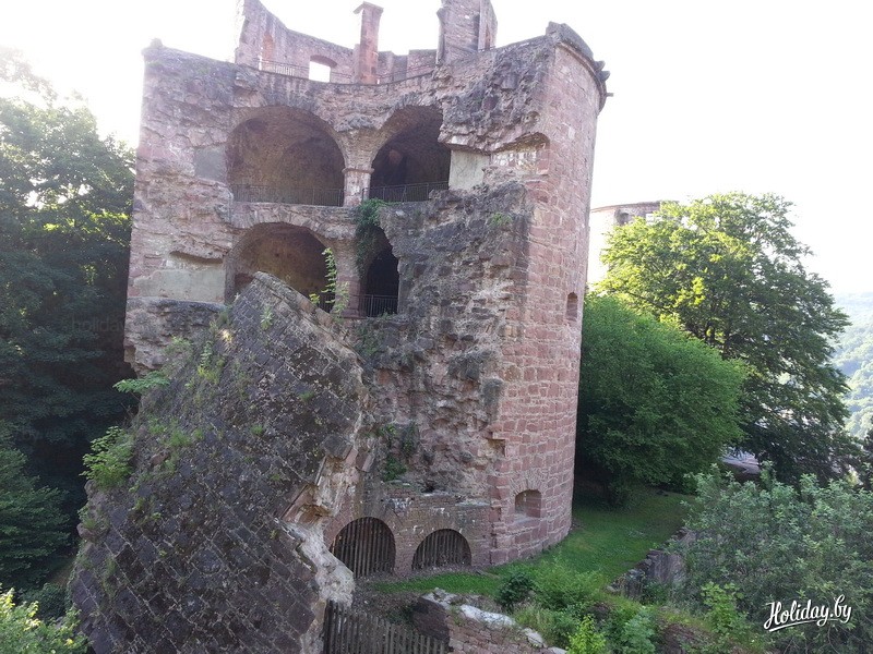 Замок в Хайдельберге стоит на 80-метровом склоне горы. Первое упоминание о нём в 1225 году. К нему с уровня города ведет 303 ступени. В подвалах замка хранится самая большая в мире винная бочка (изготовлена в 1751 году).
