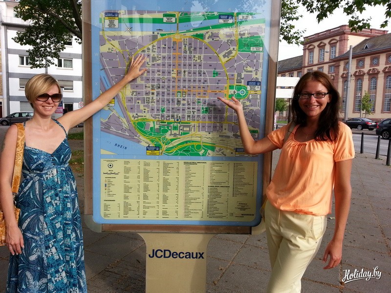 А мы в Манхайме - втором по величине городе земли Баден-Вюртемберг. Использовать город как "базу" и не погулять по нём невозможно. Первая примета - центр города разделен на квадратные блоки - это видно на схеме. Отсюда и прозвище города - Quadratestadt. Сегодня слоганом города является "Жизнь в квадрате"