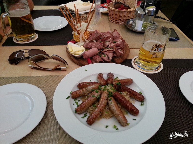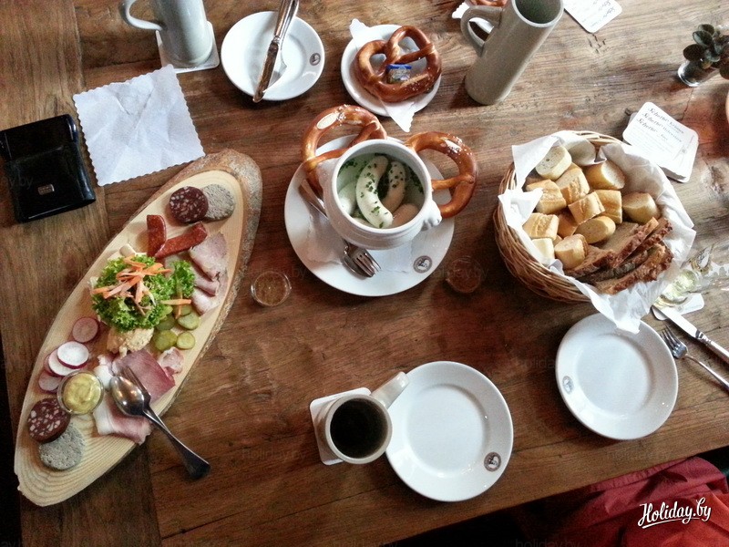 Кроме погребков необходимо посетить один из "пивных двориков" (biergarten). Особо запали в душу белые мюнхенские колбаски с горчицей.