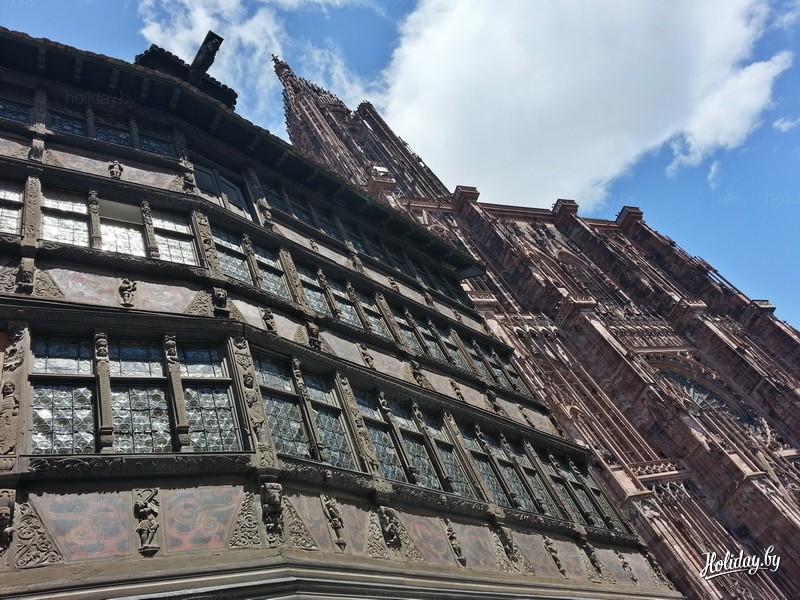 Дом Каммерцеля 15-го века на площади рядом с собором в Страсбурге