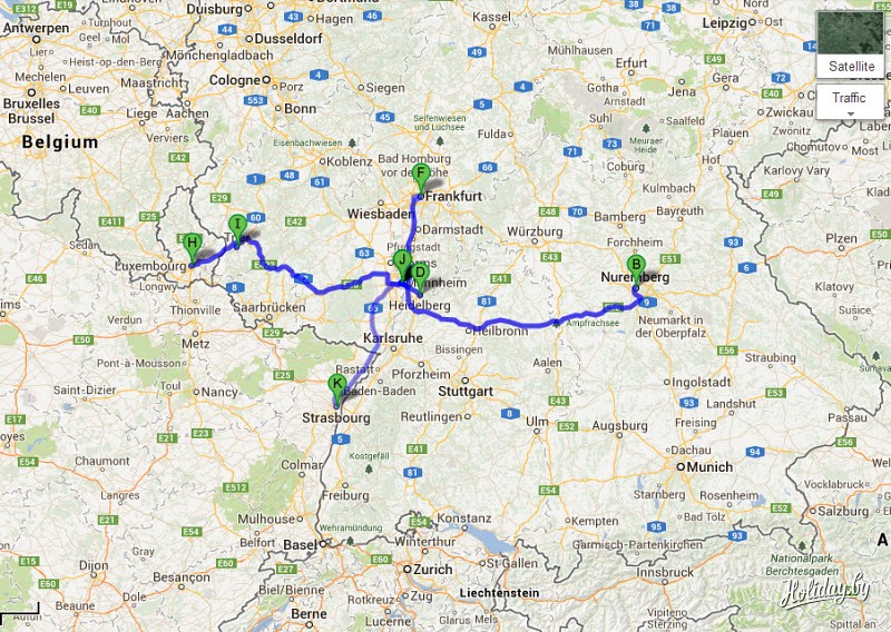 Решив все дела и имея несколько свободных дней, планируем маршрут по югу Германии с центральной точкой на нашей манхаймской "базе". В наших планах Манхайм, Нюрнберг, Люксембург, Трир, Хайдельберг, Франкфурт-на-Майне и французский Страсбург. Немногим более 1200 км, личный автомобиль и четыре дня на всё.