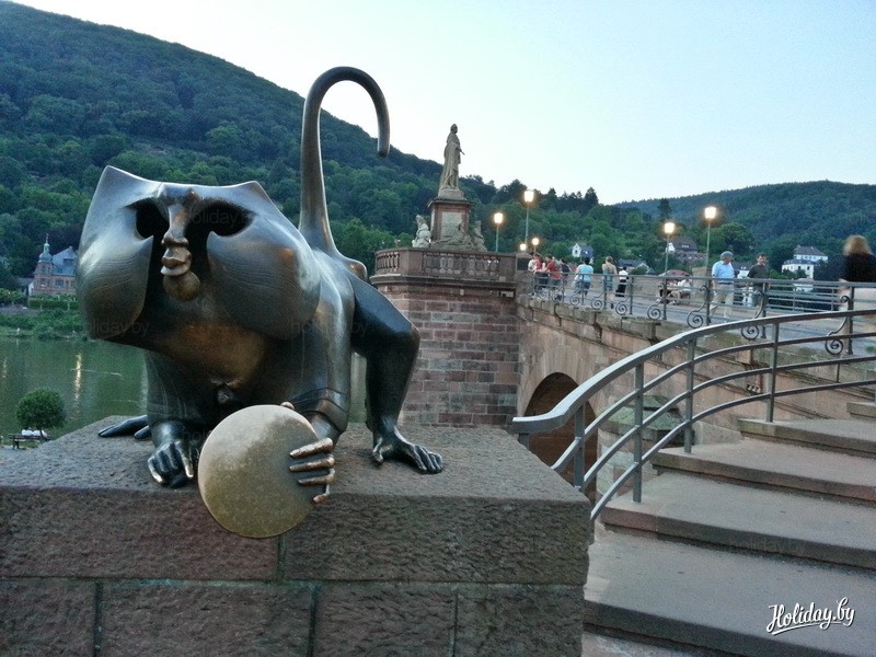 Старый мост в Хайдельберге и городская скульптура с функцией "для денег"
