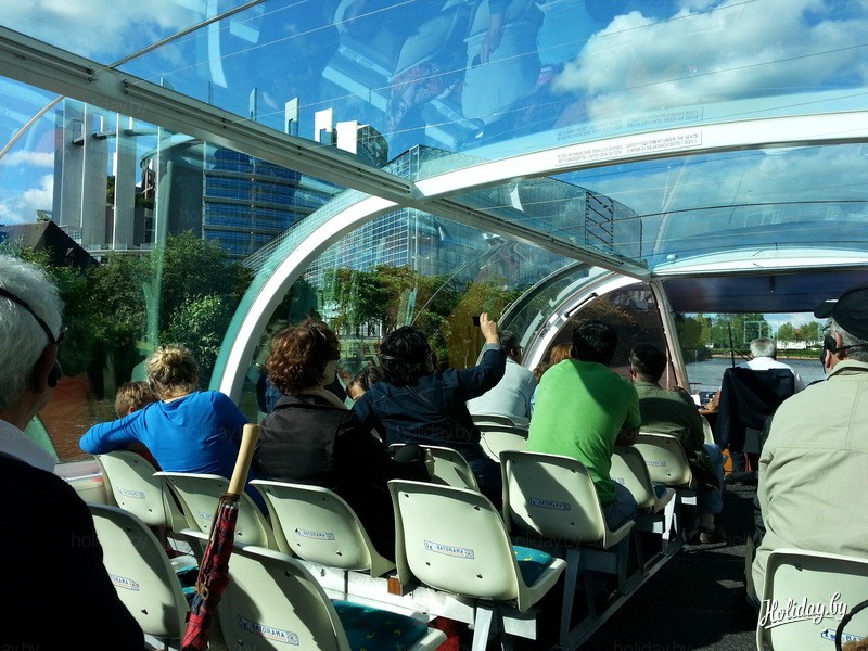 Кораблики отходят от причала недалеко от собора примерно раз в полчаса. Билеты бронируются на определенное время (его модно посмотреть на сайте Batorama). При желании прокатиться в открытой лодке - об этом стоит позаботиться заранее. Точного механизма попадания в лодку-кабриолет мы не нашли, но впечатления от закрытой не менее яркие. Каждая лодка оборудована аудио-гидом, в том числе на русском языке. Есть два маршрута - вокруг "большого острова" - старого города - по цене 7,20 евро на взрослого. И второй - "остров" + Европарламент - по цене 9,60 евро на человека.
