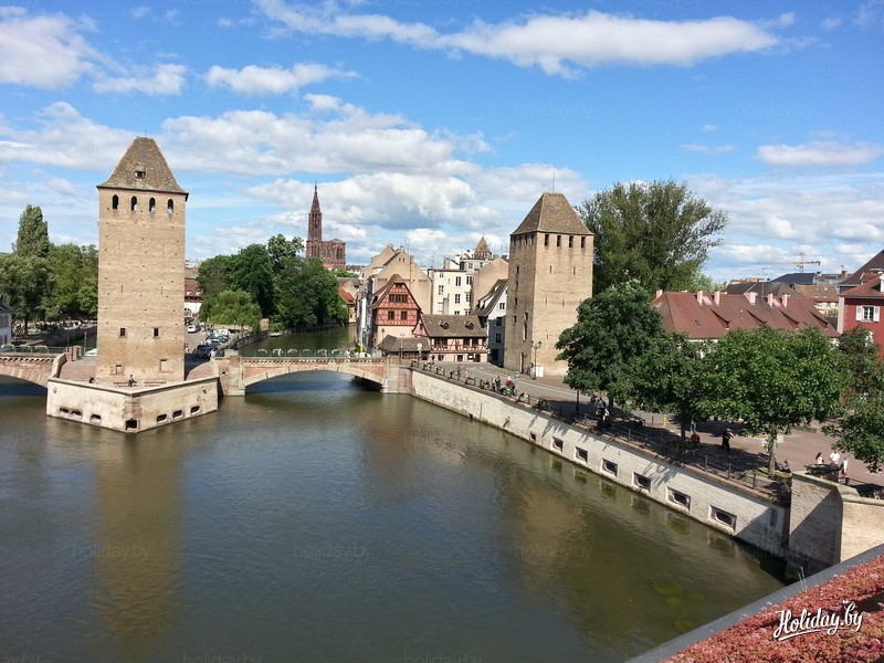За "Маленькой Францией" находятся крытые мосты. Такие мосты начали строится в оборонительных целях в 13-м веке, и вплоть до 18-го века они перестраивались. Сегодня можно видеть мощные башни, а также забраться на пешеходную крышу галереи, чтобы сделать отличные снимки и полюбоваться перспективой на старый город Страсбурга. Ну, или позагорать :)