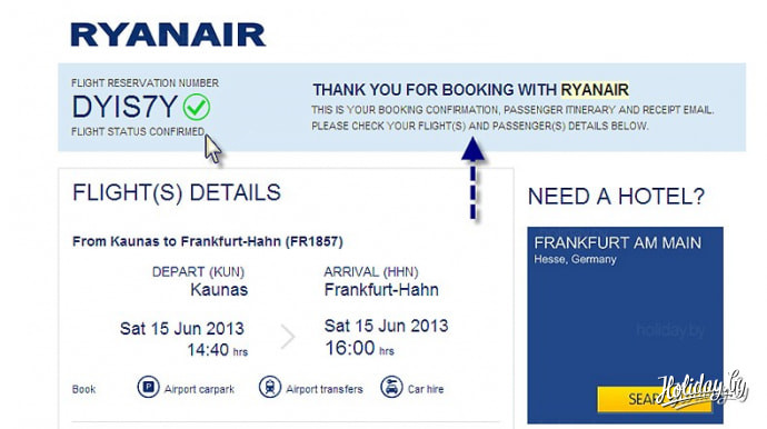 Если вы покупаете авиабилет максимально заранее (это особенно часто происходит при распродажах и акциях - авт.) до даты вылета, какое-то время вам придётся побыть в... неведении. Так как график вылетов бюджетных авиакомпаний формируется где-то по остаточному принципу, мэйл с номером рейса и точным временем вы получите за примерно неделю. Однако, например, Ryanair будет о себе напоминать регулярно мэйлами. Не пропускайте их. Периодически можно заглядывать в спам вашей почтовой программы, так как рассылка идет через почтовых роботов на английском языке.