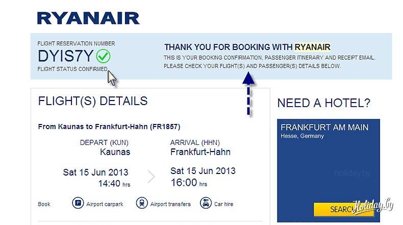 Бюджетные авиакомпании очень популярны среди белорусов. Отказываясь от дополнительного комфорта и багажа вы получаете возможность побывать во многих уголках Европы, в частности, по выгодным ценам. Так, наш тест был сделан в рамках евротура Holiday.by по югу Германии. Мы желаем всем удачного полета. Хочется сказать, что процедура бронирования авиабилета и регистрации на рейс этой и других авиакомпаний может меняться со временем - просто будьте внимательны, заполняя документы и формы.