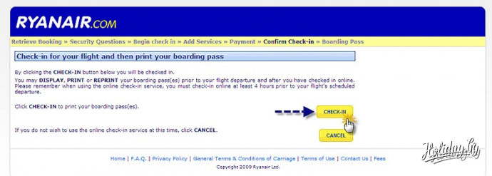 Шаг 10. Хэхэй! Система многословно приглашает нажать на "Регистрация" (Check-In) и на следующем шаге распечатать посадочный талон. Мы у цели и без некоторого времени на летном поле под крылом лоукостера. Тут надо нажать на кнопку как на рисунке.