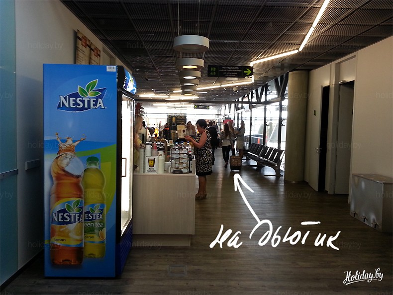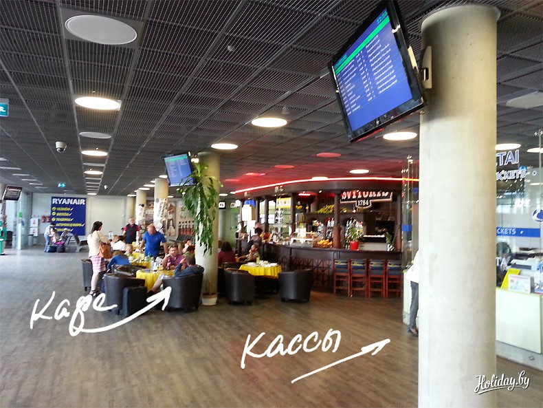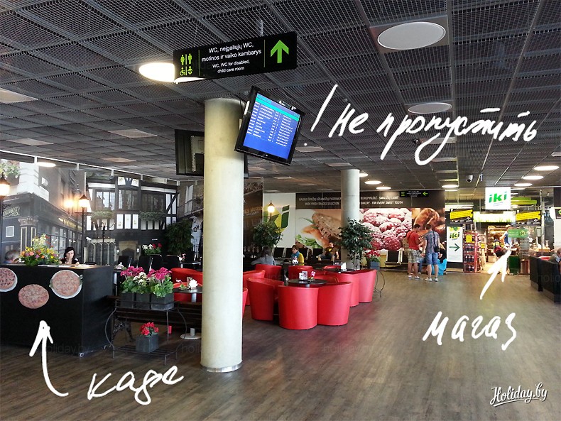 Аэропорт Каунаса. Тут также есть и кафе с гастрономом, а также зоны отдыха внутри здания. Аэропорт маленький, но достаточно комфортный для быстрого вылета. Внутри здания работает бесплатный wi fi.