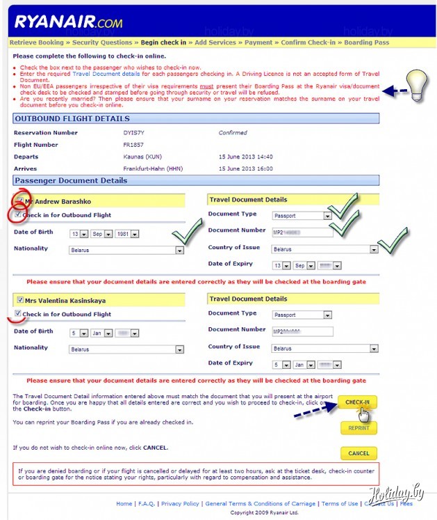 Регистрация на рейсы Ryanair. Готовим паспорта и распечатанные посадочные талоны!