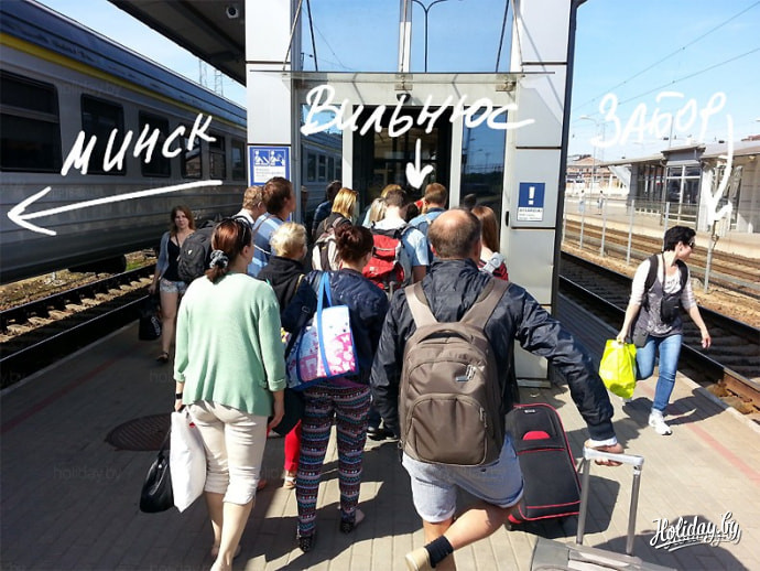 По новым правилам Литвы, белорусы, которые прибывают в Вильнюс, пограничные процедуры проходят на вокзале литовской столицы. Поэтому сегодня не стоит выбирать рейс "впритык" к прибытию поезда, так как при длинном составе процедура может доходить до нескольких часов. Неслучайно с белорусской границы желающие первыми юркнуть в тоннель к пограничникам, выстраиваются в очередь в вагоне. "Зато duty-free для обратной дороги построим!" - говорят литовцы и действительно что-то безналоговое строят на перроне. Успокоятся ли белорусские путешественники - время покажет.
