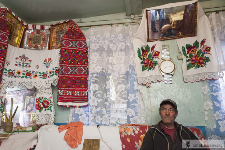 Вера Васілеўна Барсукова і яе муж Іван Міхайлавіч вядуць нас у большы пакой. Падушкі, посцілкі — усё тут вышыта рукамі Веры Васілеўны. У куце — старыя абразы, таксама атуленыя дзіўнай прыгажосці ручнікамі.